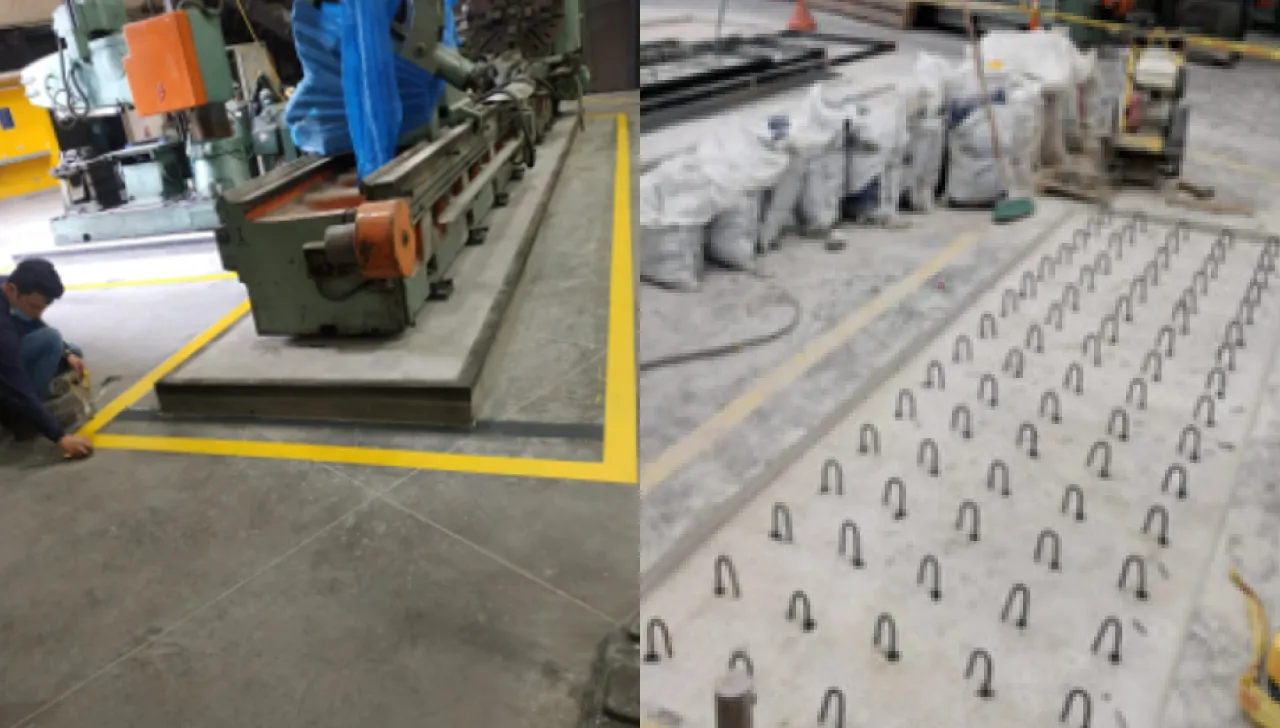 Mantenimiento a las bases y anclajes de los equipos industriales dobladora, enroladora, taladro radial imodrill, fresadora imocom, cortador imodrill, fresadora universal pedersen, sierra eléctrica sabi y sierra eléctrica rococo del taller de la red propiedad de la empresa de acueducto y alcantarillado, en base en los planos entregados y aprobados por el contratante dando alcance al presupuesto anexo al contrato y que hace parte integral del mismo.